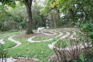 Vor einigen Jahren ist auf einer Rasenfläche des Klosters Disibodenberg, gegenüber der Frauenklause, ein Labyrinth entstanden. Als wir in diesem Jahr erneut dieses Labyrinth aufgesucht haben, waren wir erfreut zu sehen, wie gut es gepflegt ist. Vom Labyrinth hat man einen Blick auf die Ruinensteine der Frauenklause, in der Hildegard von Bingen und Jutta von Sponheim gelebt haben sollen. Etwa um 1150 siedelte Hildegard mit ihren Nonnen von Disibodenberg zum Rupertsberg bei Bingen um, da in Disibodenberg der Platz nicht mehr ausreichte und Disibodenberg sowohl Mönche als auch Nonnen beherbergte. Das Kloster Disibodenberg liegt an der Nahe bei Bad Kreuznach und wurde um 640 von dem Iren Disibod gegründet, auf einem Berg, der schon den Kelten als Heiligtum diente und auf dem zur Römerzeit ein Jupitertempel gestanden haben soll.